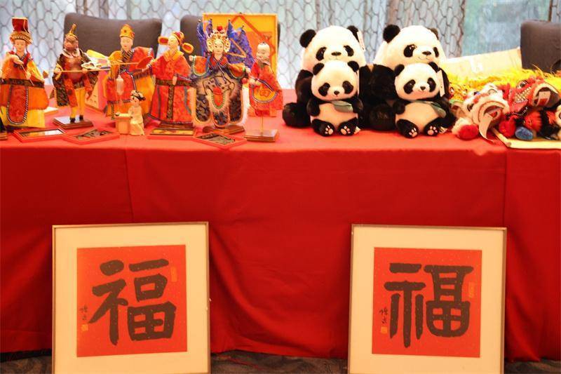 招待会现场设置的中国文化展台。人民网记者 樊帆摄