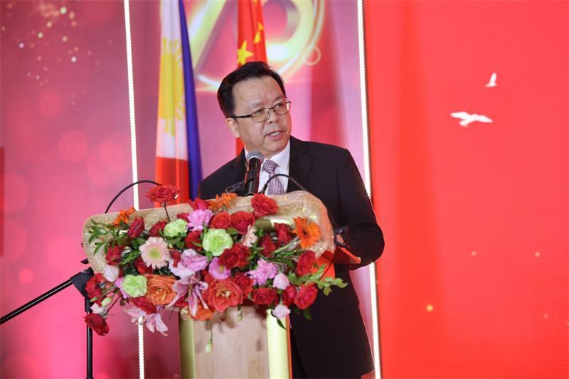 中国驻菲律宾大使黄溪连在致辞中回顾76年来中国共产党团结带领中国人民取得的辉煌成就,阐述中菲建交50周年和中国人民抗日战争暨世界反法西斯战争胜利80周年的历史启示,强调面对变乱交织的国际环境,中国将始终做世界的和平力量、稳定力量、进步力量。中菲关系具有深厚的人民性底色,人民是中菲关系的主人翁。中菲友好交往延续千年,当前的困难挑战在历史长河中不过是短暂一瞬。相信在两国有识之士的不懈努力下,中菲关系必将拨云见日、重回正轨。