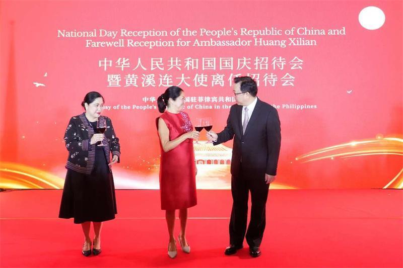 庆祝中华人民共和国成立76周年暨黄溪连大使离任招待会在马尼拉隆重举行。中国驻菲律宾使馆供图