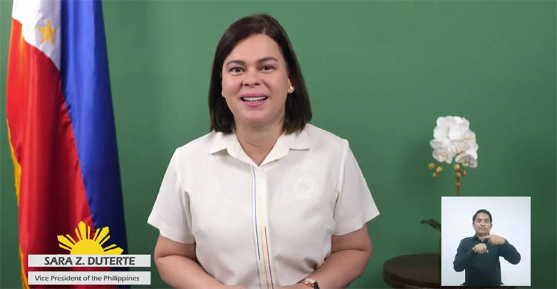 菲律宾副总统莎拉·杜特尔特在庆祝中华人民共和国成立76周年暨黄溪连大使离任招待会上视频致辞。中国驻菲律宾使馆供图